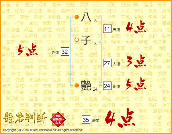八子艶さんの総運は35画の4点!