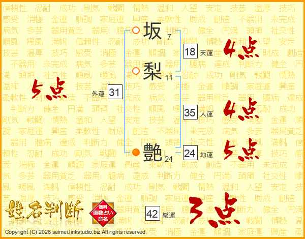 坂梨艶さんの外運は31画の5点!