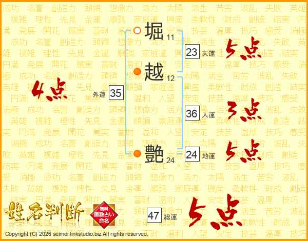 堀越艶さんの総運は47画の5点!