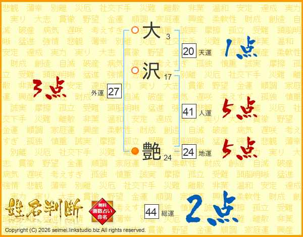 大沢艶さんの総運は44画の2点!