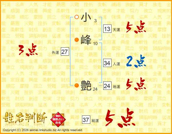 小峰艶さんの総運は37画の5点!