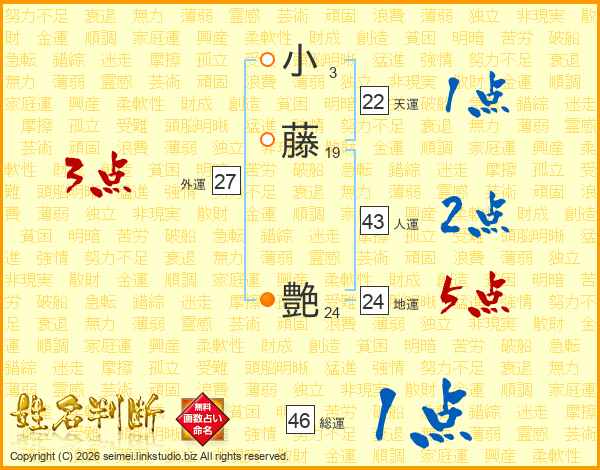 小藤艶さんの総運は46画の1点!