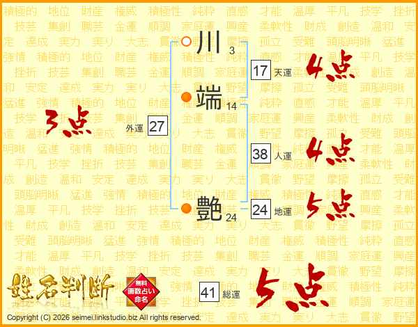 川端艶さんの総運は41画の5点!