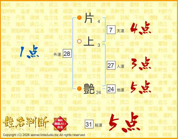 片上艶さんの総運は31画の5点!