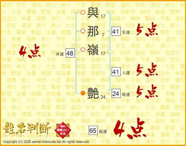與那嶺艶さんの総運は65画の4点!