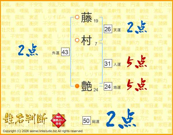 藤村艶さんの天運は26画の2点!