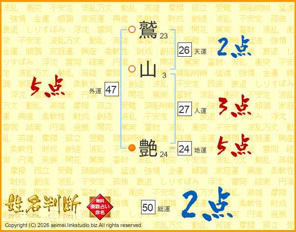 鷲山艶さんの総運は50画の2点!