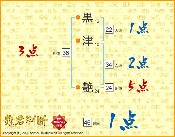黒津艶さんの総運は46画の1点!