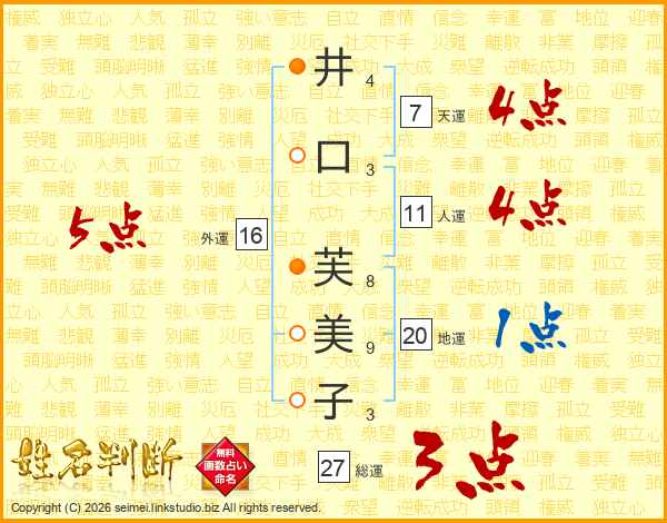 井口芙美子さんの総運は27画の3点!