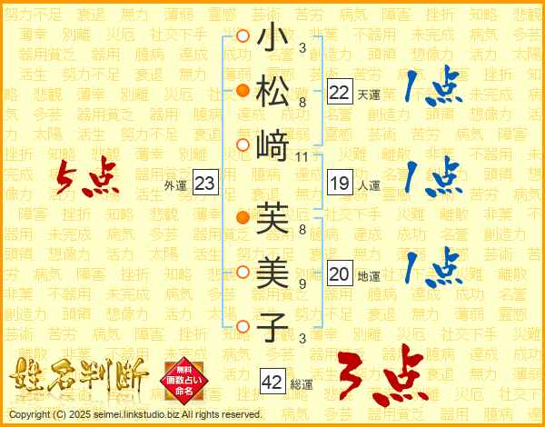 小松﨑芙美子さんの外運は23画の5点!