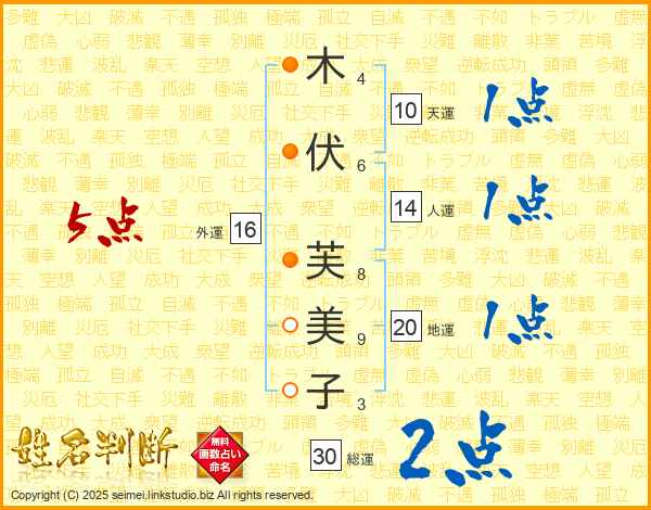 木伏芙美子さんの総運は30画の2点!