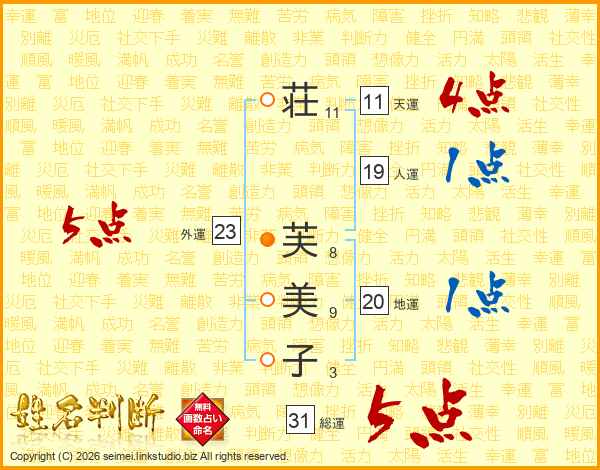 荘芙美子さんの総運は31画の5点!