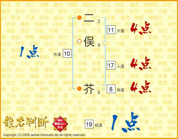 二俣芥さんの天運は11画の4点!