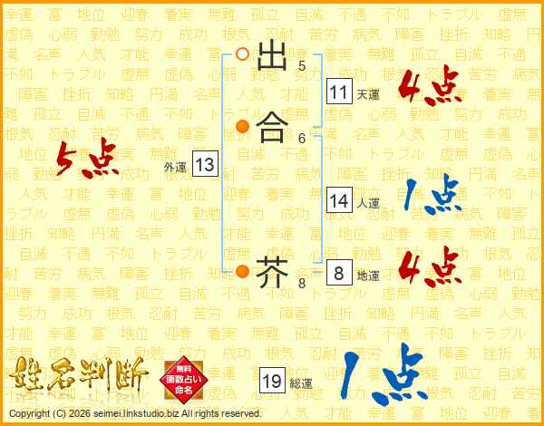 出合芥さんの外運は13画の5点!