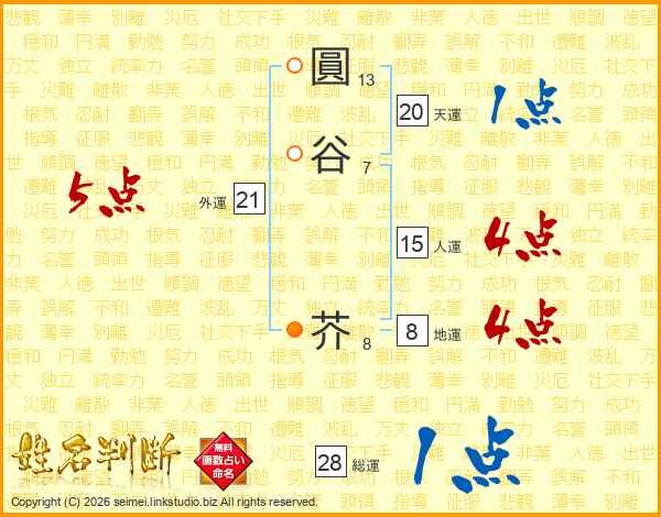 圓谷芥さんの総運は28画の1点!