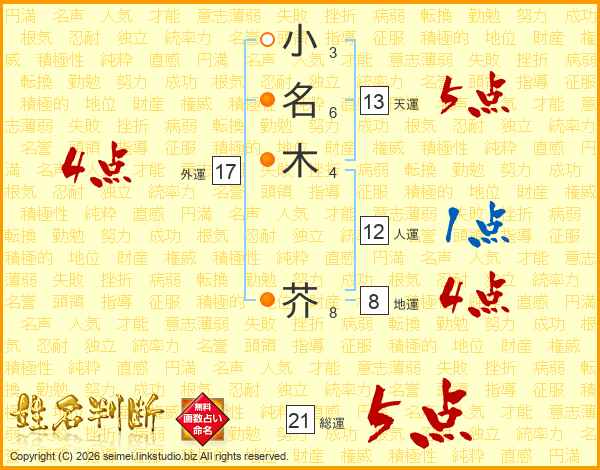 小名木芥さんの総運は21画の5点!