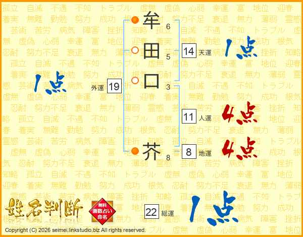 牟田口芥さんの人運は11画の4点!