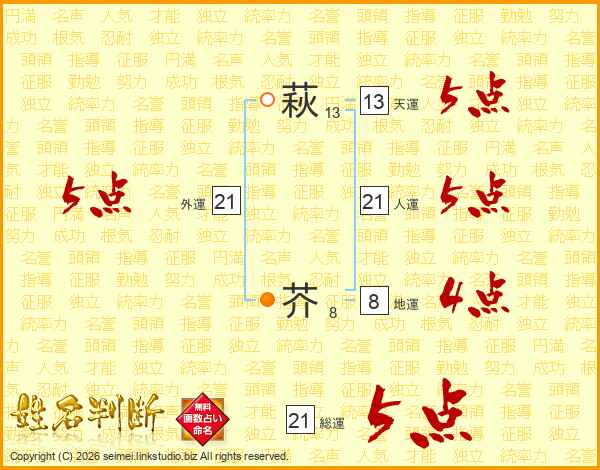 萩芥さんの総運は21画の5点!