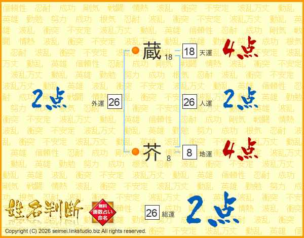 蔵芥さんの総運は26画の2点!