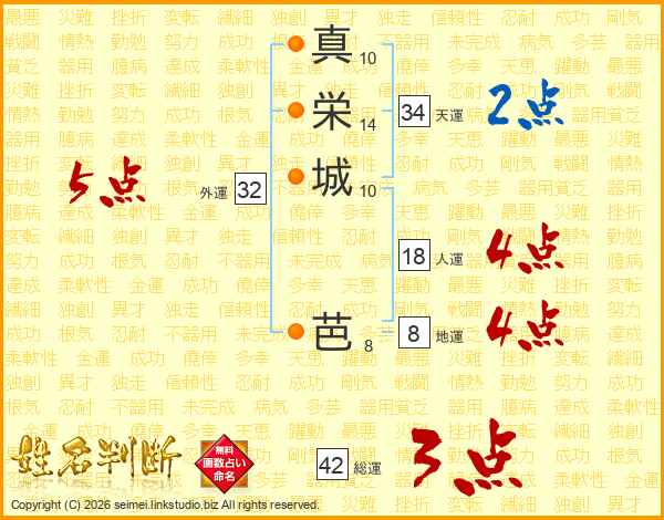 真栄城芭さんの外運は32画の5点!