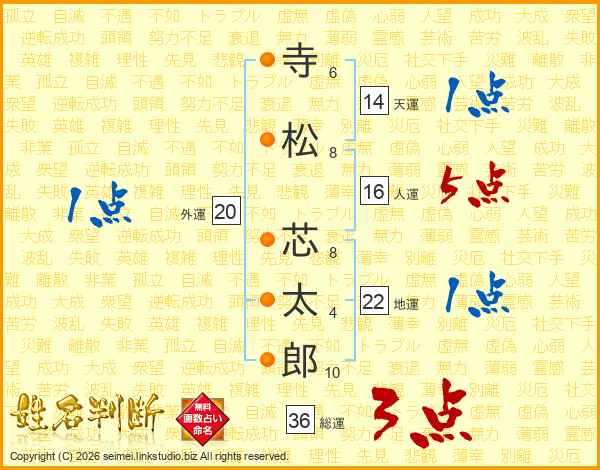 寺松芯太郎さんの総運は36画の3点!