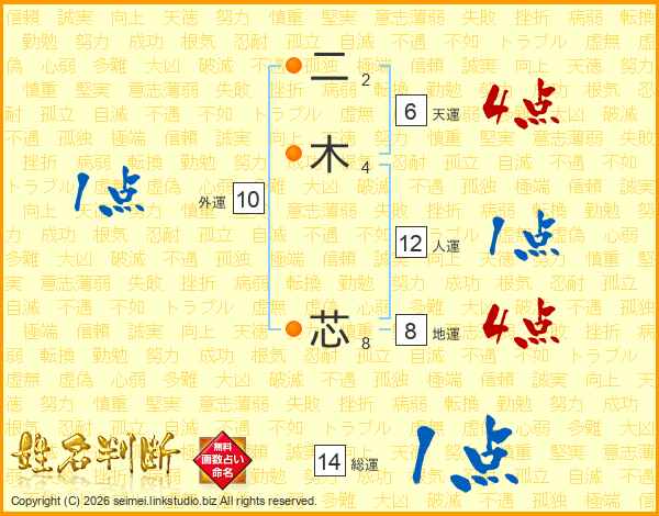 二木芯さんの総運は14画の1点!