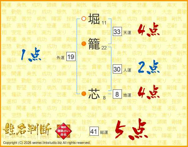 堀籠芯さんの総運は41画の5点!