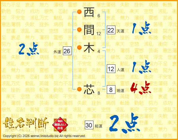 西間木芯さんの総運は30画の2点!