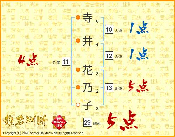 寺井花乃子さんの総運は23画の5点!