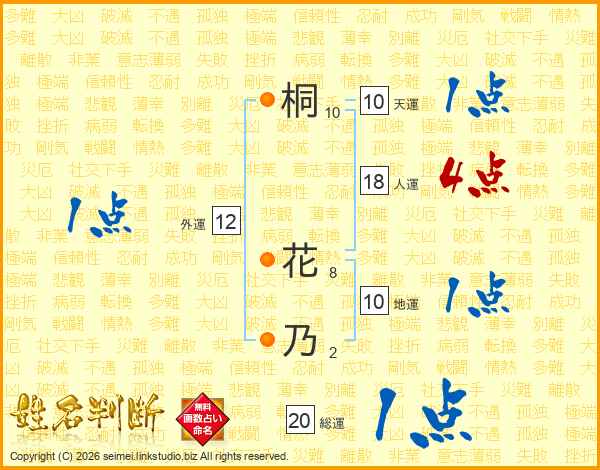 桐花乃さんの総運は20画の1点!