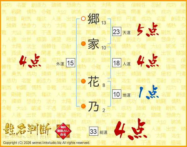 郷(13画)家(10画) 花(8画)乃(2画)