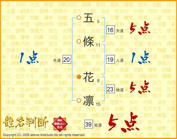 五條花凛さんの総運は39画の5点!