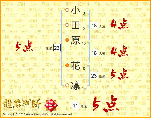 小田原花凛さんの総運は41画の5点!