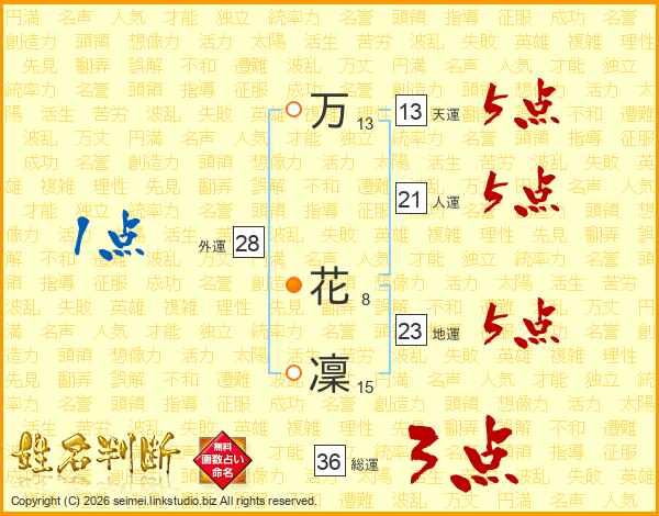 万(13画) 花(8画)凜(15画)