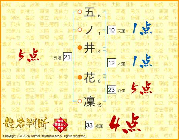 五ノ井花凜さんの総運は33画の4点!