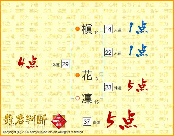 槇花凜さんの総運は37画の5点!