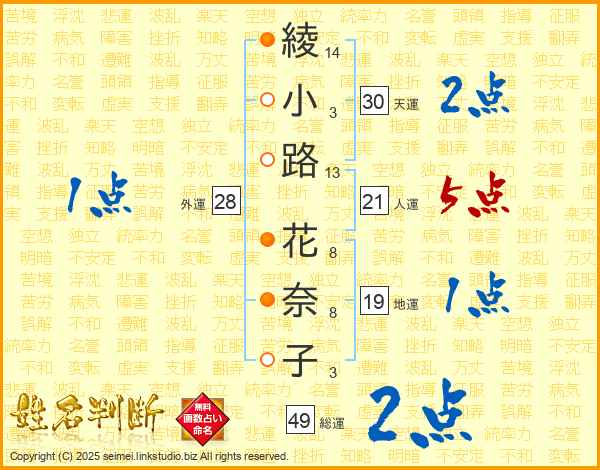 綾小路花奈子さんの総運は49画の2点!