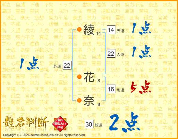 綾花奈さんの天運は14画の1点!