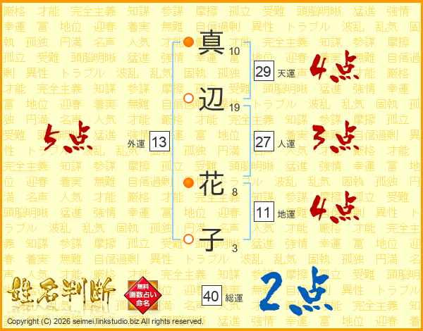 真辺花子さんの総運は40画の2点!