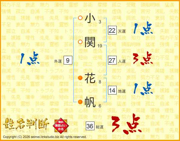 小関花帆さんの人運は27画の3点!
