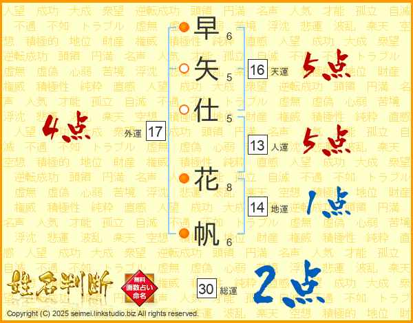 早矢仕花帆さんの総運は30画の2点!
