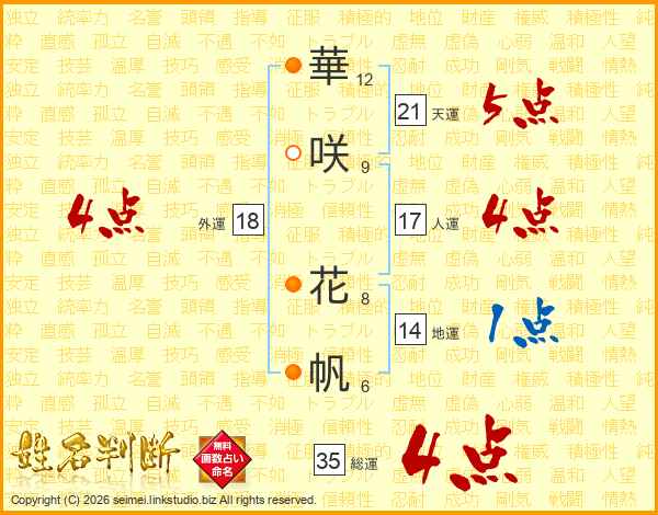 華咲花帆さんの外運は18画の4点!