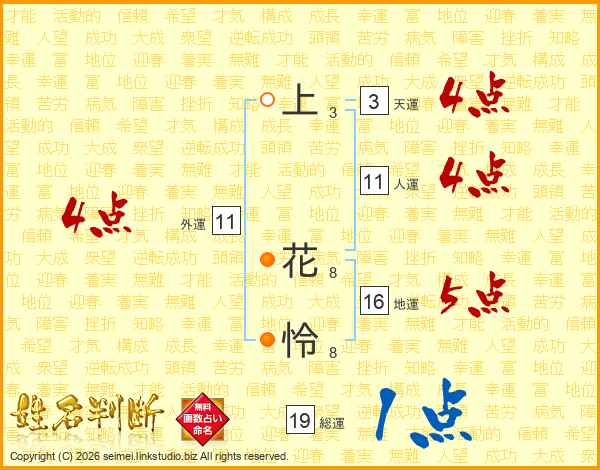 上花怜さんの総運は19画の1点!