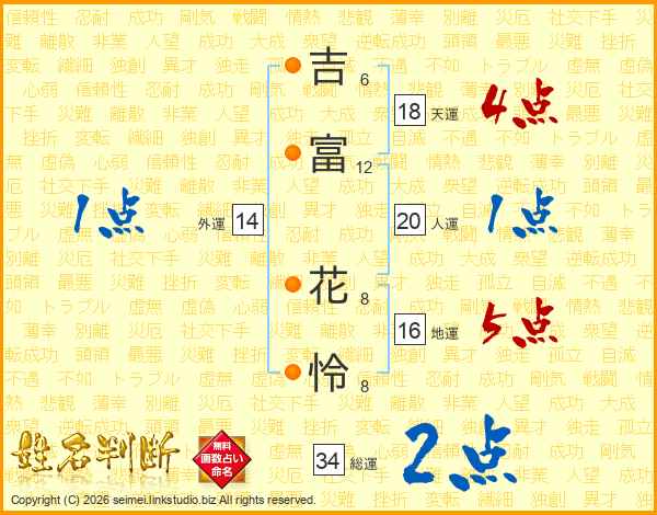吉(6画)富(12画) 花(8画)怜(8画)