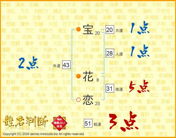 宝花恋さんの総運は51画の3点!