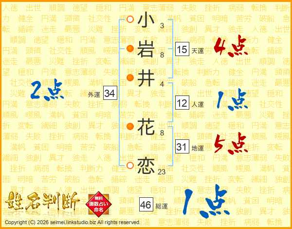 小(3画)岩(8画)井(4画) 花(8画)恋(23画)