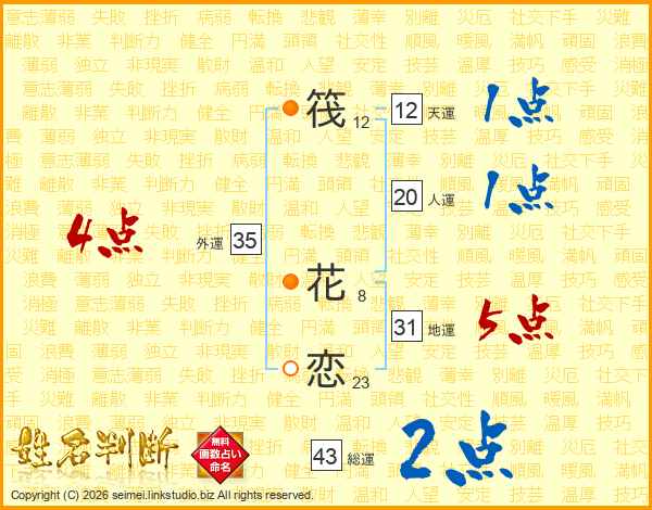 筏花恋さんの外運は35画の4点!