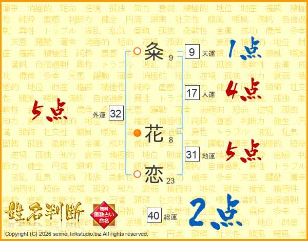 粂(9画) 花(8画)恋(23画)
