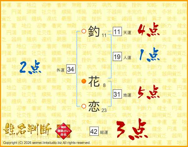 釣花恋さんの天運は11画の4点!