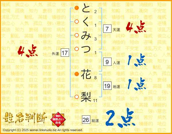 とくみつ花梨さんの総運は26画の2点!